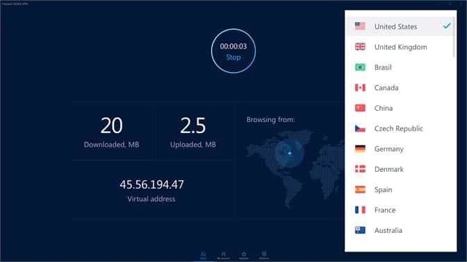 Благодаря 2500 серверам в 25 странах VPN обеспечивает высокоскоростное соединение со скоростью загрузки 0,54 мегабайта в секунду.